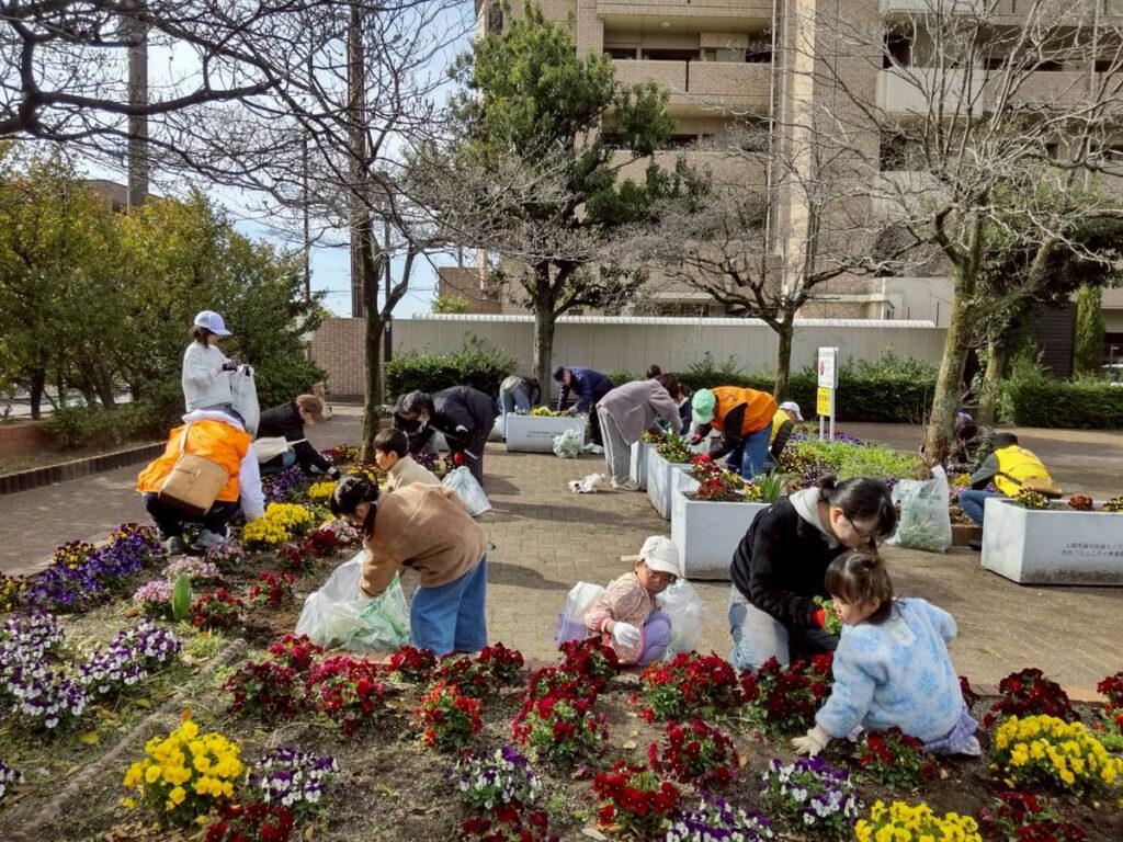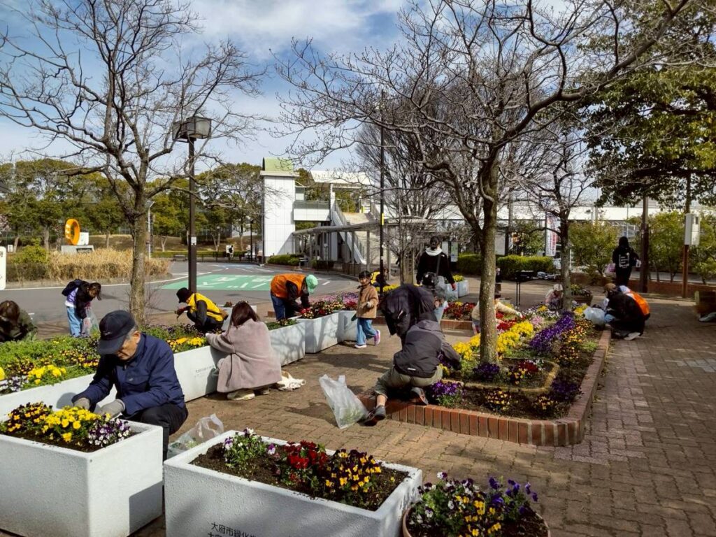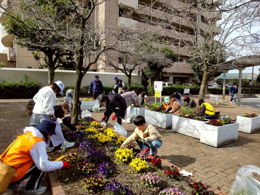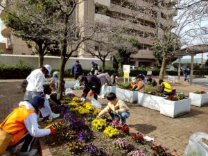 3月20日金曜日卒業式の翌日に、大府駅西ロータリーの花壇で、大府小と大東小の子ども達とその保護者、大府コミュニティの環境部会員の皆さんとが集まって、草取りを行いました。