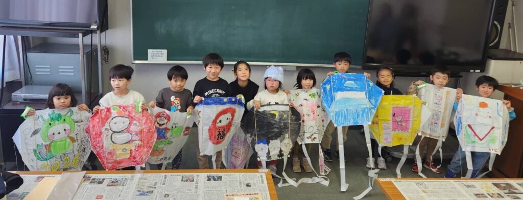 子ども達が、自宅でたこに絵を描いてくれたおかげで、たこを完成させるまでの作業が、スムーズに行えました!