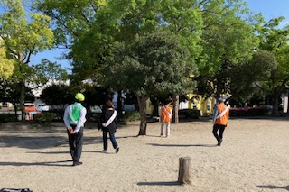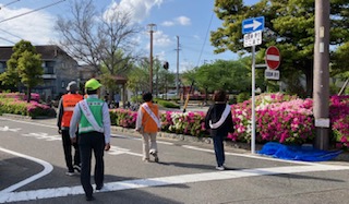 地域こども部会の継続活動の一つです。更生保護女性会、民生委員、大府自治区と協力して児童の下校を見守りながら、声かけをして、公園等に不審なもの、危険なものがないか、また不審者はいないか、トイレに異常は無いかなども確認します。