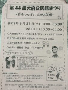 大府夏まつり 2025年7月12日 最終更新日時 : 2025年7月27日 community イベント詳細 日付: 2025年8月2日 5:00 PM – 3日 9:00 PM カテゴリ: 共通 大府駅前で毎年恒例の大府夏まつりが開催されます。 パレード開始:18:30~18:45 大府市出身の俳優さん、清水くるみさんが登場!!