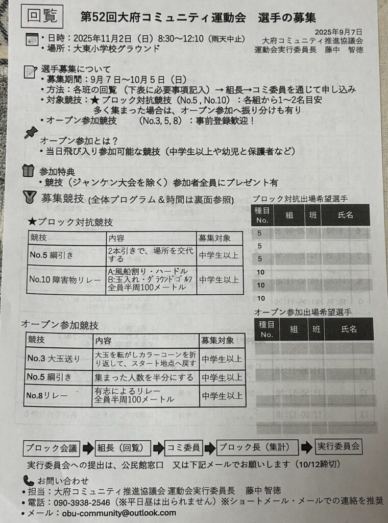 【告知】大府コミュニティ運動会開催(2025年11月2日)